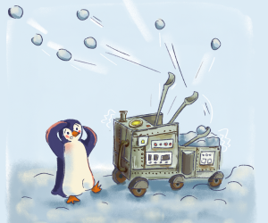 Le meilleur ami pingouin de Paco, très grognon mais toujours prêt à aider les autres.
